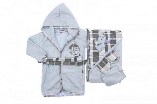 Checkered Cotton Fleece Bathrobe Set (Babies)